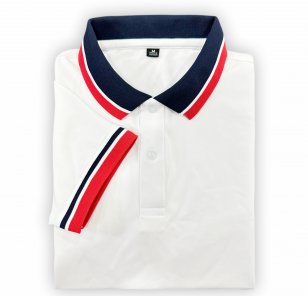 Áo thun cổ trụ bẻ Polo Trắng - Bo sọc lớn | CS Poly